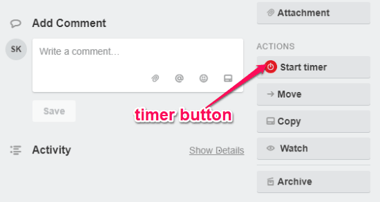 Step 2: Now, simply open Trello and expand any card you want for which you want to track the time. After that, you can see a “Timer” icon at the top which you can click to start time tracking. This icon will be available on all your cards and you can enable it for individual cards manually.