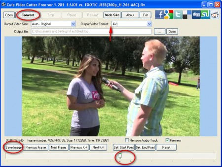 Cute video Cutter in the next free video cutter in this list. It is an extremely easy to use software with some really good features. You can easily open a video on its interface, select start & end point, select portions to include, and cut the left out portions. The software not only lets you cut videos, but also convert them into different file formats. It supports a long list of formats (29 in total). This is the most important feature of this software. It even supports file formats like 3GP, iPod. So, you can even cut videos that you recorded on your mobile phone.
