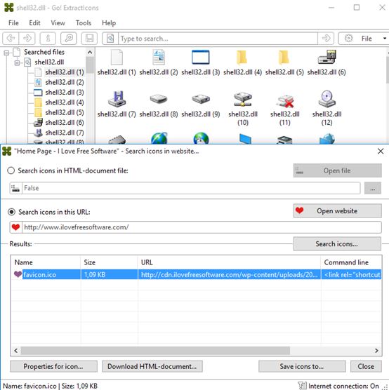 I’m mentioning Go! ExtractIcons because next to the usual extractions of icons from EXEs and DLL files, it also supports icon scraping from websites.