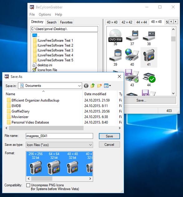To start things off, it doesn’t just stop at extracting icons from executables, DLL, OCX and CPL file formats are also supported. Filtering tool lets you filter out cursors and icons, only icons of a certain size, color depth, etc., see image above. Folder search is possible to setup by using the * wildcard. To extract icons select File >> Save.