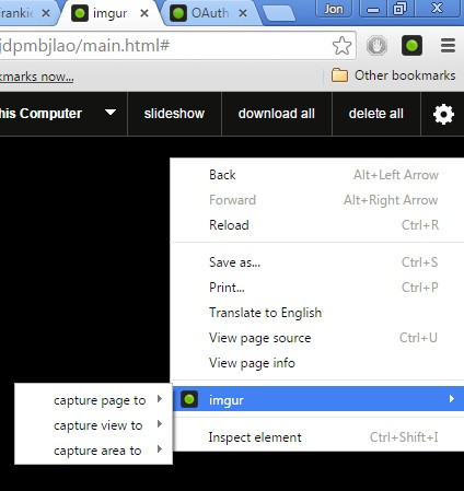 Computer upload is supported as are screenshot uploads and reuploads of images from around the web to your imgur account. Extension works best when you grant it access to your imgur account.