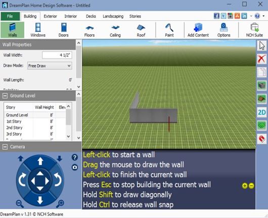 You can see it in action on the image above. Due to its compactness, it doesn’t have as many features that Sweet Home 3D has, but you do get to create decent looking interior design using it. Use the top left corner toolbar to add objects to the drawing board. Exterior, buildings, can also be manipulated using DreamPlan.