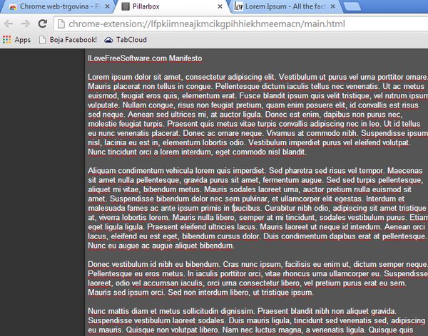 On the image above it’s not running in fullscreen, but it’s relatively easy to activate this feature by hitting F11. Editor is minimalist there’s no menus. It automatically saves text that you type, so it’s always gonna be there the next time that you open up the editor. Color of the background and text as well as several other settings can be changed by accessing the extension settings from the extension page.