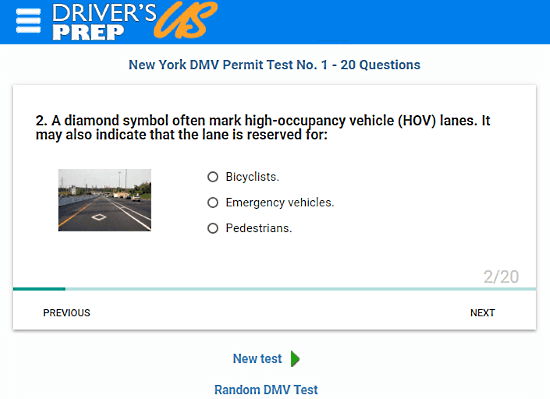 DriversPrep.com offers online DMV practice tests to help you prepare for DMV permit test and driver license test. Here, you can practice these tests for any US state. It gives you a series of 3 tests with 20 to 40 questions in each test. The tests include road rules, road signs, lane rules along with other general and state traffic laws. Each time your practice here, you get a random set of questions. So, you can practice again and again until you feel confident enough to take the actual test.