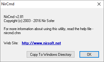 To do that, first, download NirCmd, extract the ZIP file and run nircmd.exe as administrator. This will give you a popup; click the “Copy To Windows Directory” button to add NirCmd to your Windows directory. This will allow you to use NirCmd commands throughout the system. If you don’t want to add NirCmd to your Windows Directory, you can skip this step. In that case, you need to browse the nircmd.exe file in step 4 rather than just typing “nircmd”.
