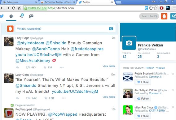 All the other extensions that I covered until now focused on only changing one thing, colors, fonts, etc. ReTwit will put the sidebar on the right, and give the entire interface a more modern look, as you can see from the screenshot above.