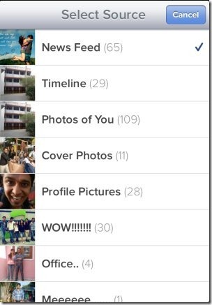 The best part of this Cooliris app which I liked the most is its Facebook part. Apart from the photos in the news feeds, you can even browse cover photos, photos from your album, photos of you, and the like from your Facebook account. If you like any photo which is uploaded by any of your Facebook buddy, then this app is the best to extract and save the photo in your iPhone camera roll.