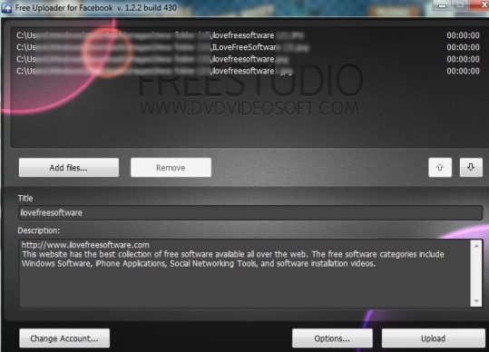 Therefore, Free Uploader for Facebook is a useful software which lets you upload almost all kind of video files and images to your Facebook timeline. And if you have more than one account on Facebook than you can change it directly from its interface to upload media files. It’s a simple and effective software which anyone can use easily.
