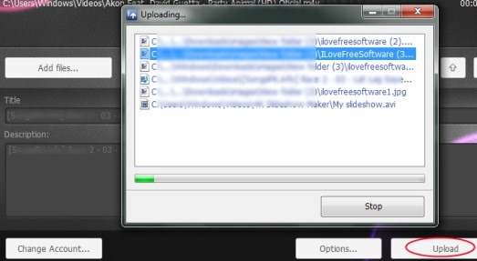 Once after adding images and photos from your computer, you can arrange them (move up or down) using available buttons. Moreover you can add title and description about each single file directly from its interface which is also a plus point about this software. You can view your files simultaneously on Facebook (as soon as they will be uploaded). However, the uploading speed is not so good and it takes time to upload all of media files (also depends on your Internet connection).