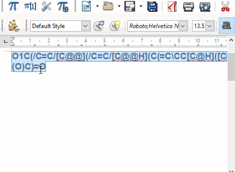 Step 2: Now, specify a chemical formula whose chemical structure you want to add as an image. As I mentioned, you can either specify a chemical notation identifier like SMILES, InChlKey or simply specify a chemical formula name. After that, select the chemical formula text as you can see in the screenshot below.