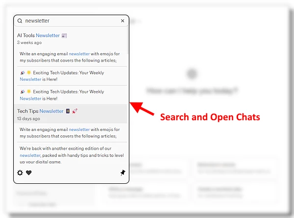 There is no additional setup. When you install the extension and open ChatGPT, you get a search box at the top of the chat section. To search chat, all you have to do is click that search box and type the keywords.