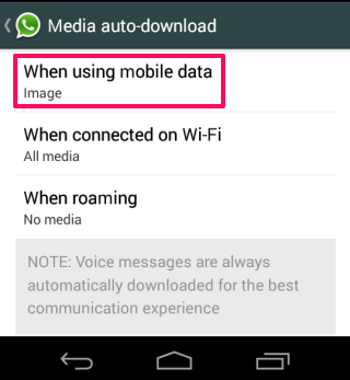 Stop Auto Media Download on WhatsApp when on Roaming:
