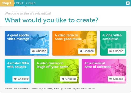 Weavly is a nice free online service that lets you easily and quickly create video remixes by combining audio, video, and moving image files from various popular media sources including YouTube, Vine, SoundCloud, Loopcam, Tumblr, and Imgur. Try it out, create your own cool video remixes, and share them online for free.