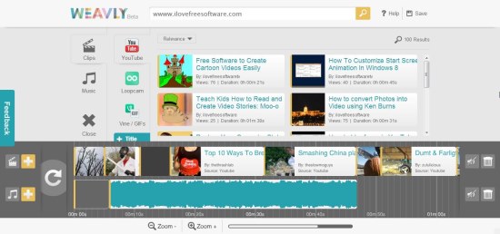 Note: Weavly does not lets you download the videos that you create with this free online service to make remix. You can only share URL of the videos, or embed videos on web pages. Also, you cannot upload your own media files from your computer to add to your video remix. Instead, you can only use content that is available on one of the supported websites.