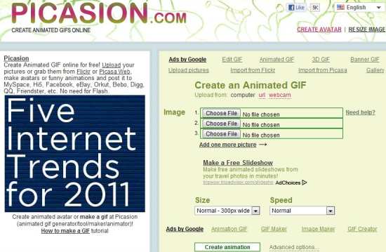 Picasion is another free GIF animator web application on our list that helps you to create funny and innovative gifs out of your pics within minutes. The application is designed to grab your pics from your system and even from Picasa and Flickr. You can design your project or banner with this easy to use application that too for free of cost and simple to operate.