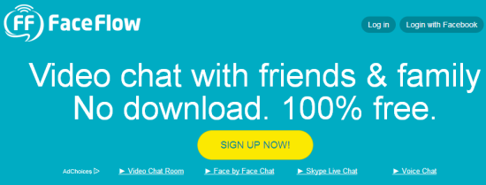 The first website in the list is FaceFlow. FaceFlow is a free website for online video chat with your friends or anybody you want to chat with. This website provides four different options to chat: Text chat, Voice call, Video chat, and Group video chat. With this website you can start chatting either with one friend or you even have video chat with multiple people. You can chat with upto 3 friends at the same time.
