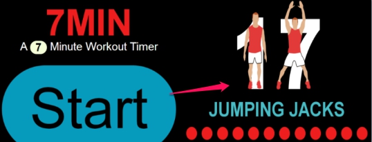 In below screenshot, you can see main interface of 7Min online workout app (in left part). You can start with the first exercise ‘Jumping Jacks’.