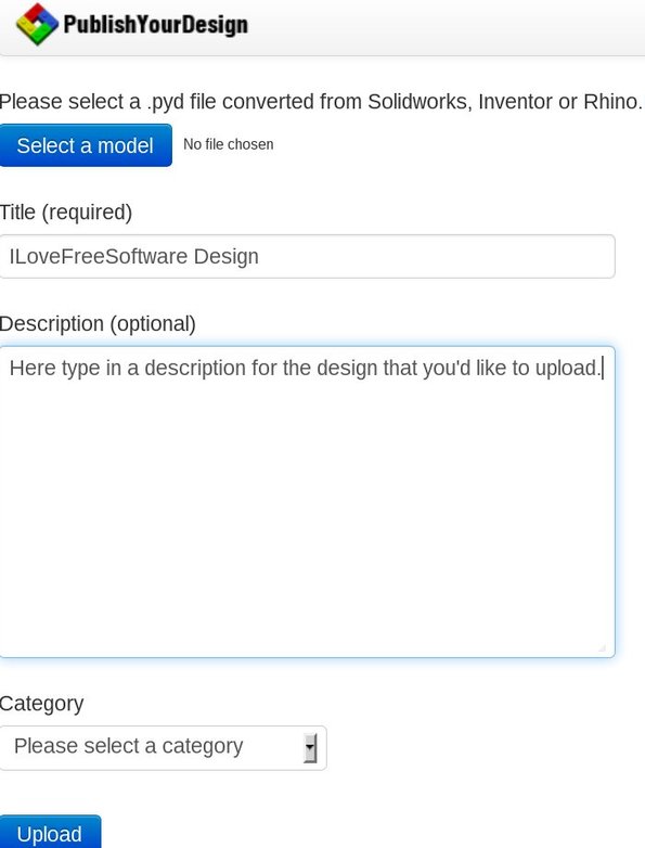 Publish Your Design will work with most modern web browsers, on practically every operating system, but you will have to have somewhat more modern graphics cards. Otherwise you might receive complaints and this free web based 3D modeling software might not work.