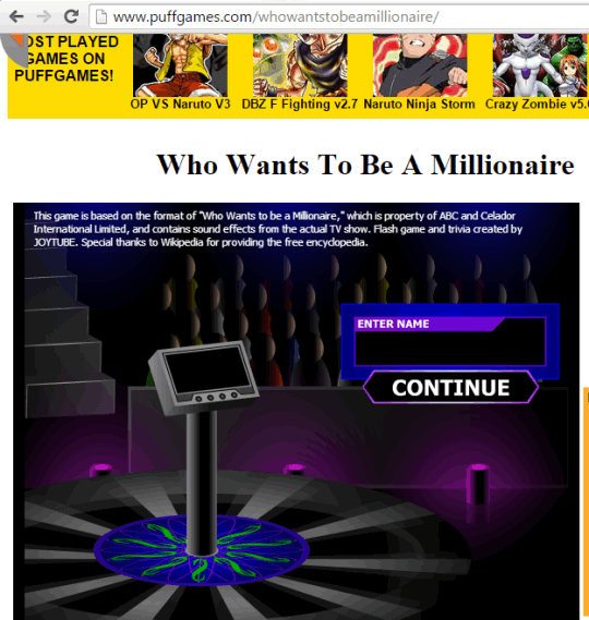 Who Wants To Be a Millionaire on Puffgames website