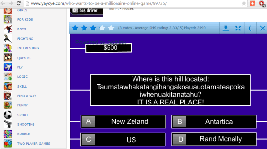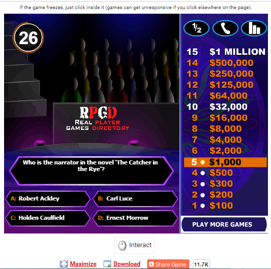 Gamesloon.com with Millionaire game