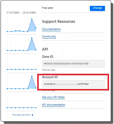 From the site’s dashboard in Cloudflare, you also need to copy your account ID.