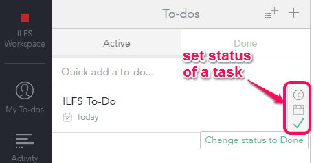 When you will hover the mouse cursor over a particular task or to-do, you will be able to set the status of that task. For example, you can mark the task as done or set it to later. All the tasks are organized status wise.