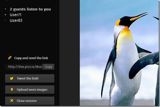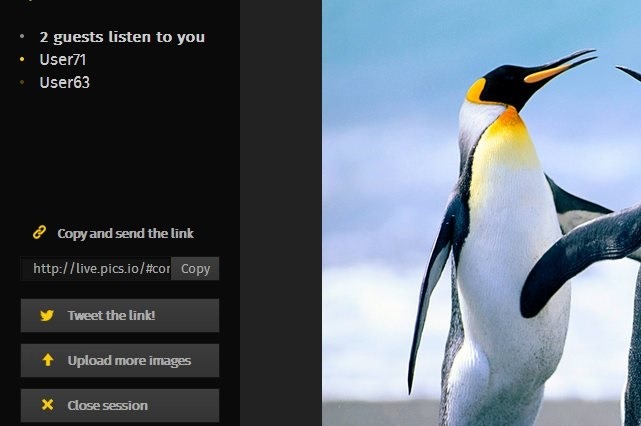 Once you have uploaded the photos, the website creates a session and you can invite your friends to join you. There is a link provided by the website that you can mail your friends to invite them. Once they visit that link, their name is added to your guest list. You can invite more than one guest at a time if you want to. After this you can start showing them the photos one by one and also talk to them. As you move on to the next photo, the photo on your guest’s screen also changes automatically in real time. Once you are done showing the images, you can simply close the session and your images will be removed from the website.