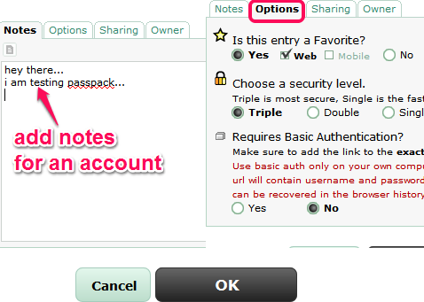 Along with entry details, you can add a note (1280 characters) for that account. Moreover, you can also mark that website account to favorite list and can select security level (single, double, and triple) as well.