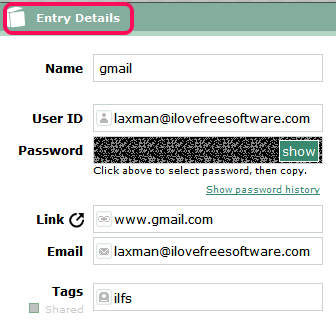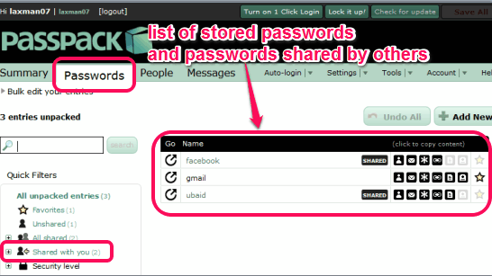 Although, Sharing option is also available there, but you cannot use it until you have enabled and started sharing. So, you can simply save all the details to store password on your Passpack account. Similarly, you can add upto 100 account details.