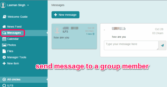 - Messages: You can send a message to a particular group member and he/she can also reply to you.