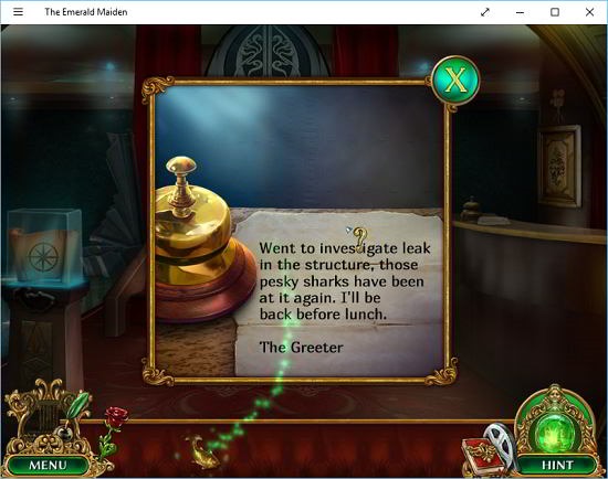 The Emerald Maiden is a great game if you are looking for a mystery cum adventure game app. The game runs very smoothly on all supported devices and makes for a fun way to while your time away. It’s set in the Emerald Hotel where you have to investigate a mystery. The game is replete with hidden object levels which pave the way to solving the mysteries involved in the game. When you run the game on your device, you will be presented with the below screen.
