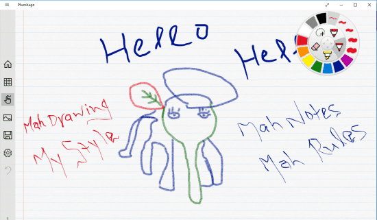 Above you can see a sample drawing and notes on this Windows 10 free note taking app.