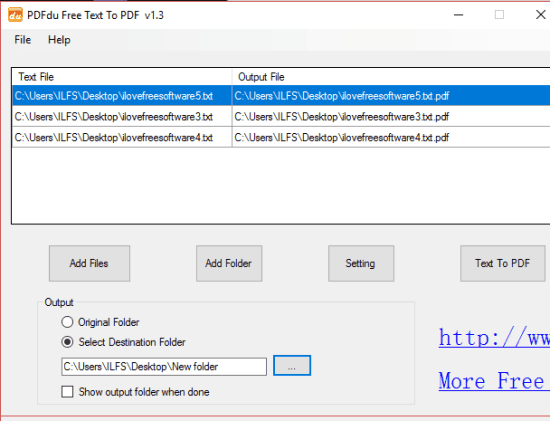 Apart from that, it lets you set output folder and output page size (A4 vertical, A4 horizontal, custom page size, etc.). Output font settings can also be adjusted in which you can set font color, font family, and font size. This software also comes with an option to password protect PDFs, but this option didn’t work for me. Still, it is a very good bulk text to PDF converter software. It also generates separate PDF files for input text files.