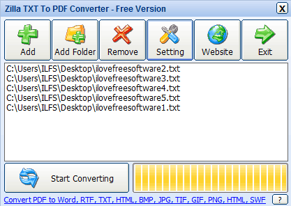 It also comes with its unique feature. Apart from converting text files to PDF in batch, you can use this software to convert DOC files, PDF to image, convert XLS, XLSX, HTML, and other format files. It supports DOC, DOCX, PDF, RTF, TXT, and other output formats. So, the software is good for document conversion as well as to bulk convert text to PDF files.