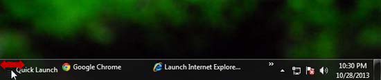 As soon as you do this, a Quick Launch Bar will be added to the right side of the taskbar, besides the tray area.