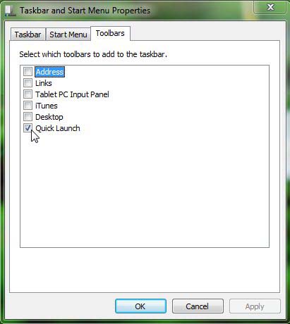 Remove Quick Launch Bar from Windows 7 taskbar:
