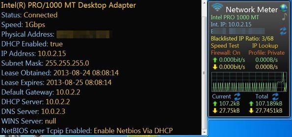 Like we already mentioned, click on the Network Meter text above opens up additional information about the network connection in an extended window to the left.
