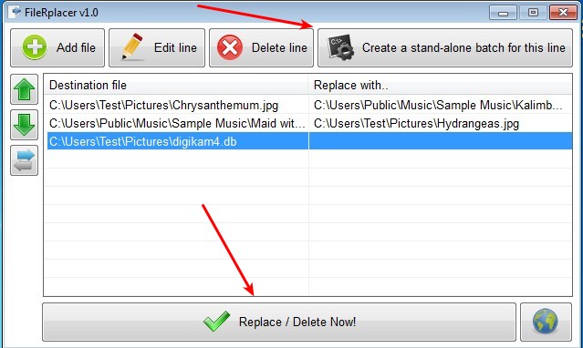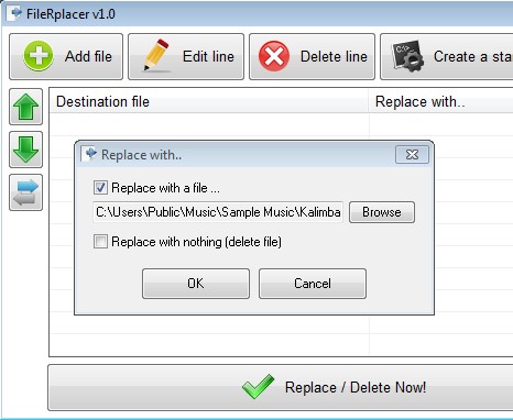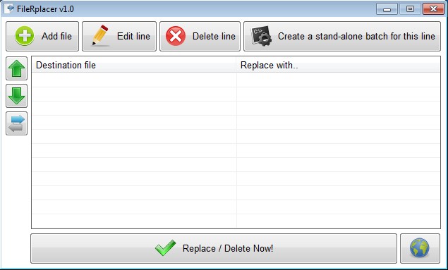 FileRplacer is a free file management utility for Windows which you can use in order to replace and delete multiple files at once. To set up file replacement with this free file management utility you first have to select the destination files, the ones that’re gonna be replaced, and the new replacement files that’re gonna take place of the destination file. Option for replacing the destination file with nothing, which means that it gets deleted, is also available.