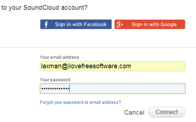 login with your SoundCloud account