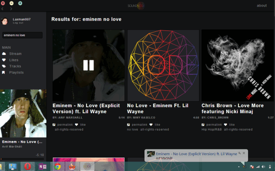 Above screenshot shows the interface of this free SoundCloud desktop client.