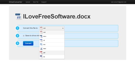 DriveConverter is a free file converter app for Google Chrome that lets you convert various documents, spreadsheets, images, and audio files in your Google Drive from one format to another. It’s a nice free app that let’s you easily convert Google Drive documents online, save them back to your drive, or download them to your system. DriveConverter works quickly and allows file conversion without downloading files from Google Drive.