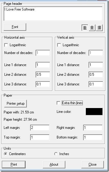 We have already reviewed websites to print graph paper that let you print graph paper online. In case you don’t want to do it online, Log paper is a good option. You can download this free log paper printer on your computer, and easily generate and print log paper.