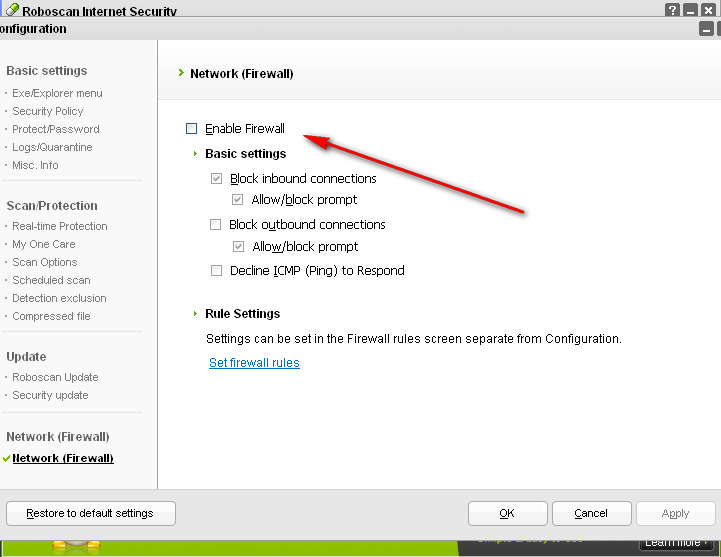 By default the firewall is disabled, you’re gonna have to turn it on by clicking on Setup and entering the firewall settings.