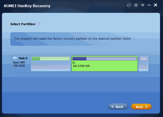 AOMEI OneKey Recovery creates a backup image to unallocated space of selected hard drive. This software creates factory recovery partition to that particular drive which remains hidden. After this, you can restore the PC by just pressing ‘A’ key during system restart, whenever needed. That’s why it is named as one key recovery software.