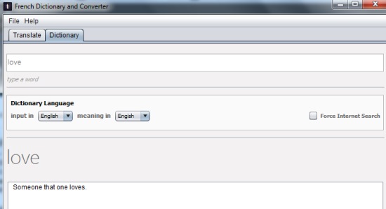 - Provides a forced internet search option. It allows users to translate words and find meanings using Internet, even if you have searched a particular content before.