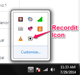One of the best thing about this screen recorder for Windows is that it’s absolutely easy to use. When you will finish installation part of Recordit screen recorder, you will find its icon in your PC’s notification tray. Now, you just need to follow the following steps and you will record your PC screen in just a matter of few seconds. And after that, you can quickly save the screen recording as animated gif. Lets get started with the steps to record screen: