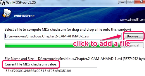 This utility comes in handy to find out if downloaded file is same as online file or not. You can generate and verify checksum value of large files (having size in GBs) as well. Also, it is portable in nature, so does not needs any installation.