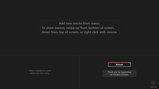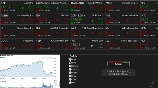 You can turn on the ‘always on’ option in the app and then Stock And Futures will keep providing you with updates constantly and this will stop your computer or device from falling asleep. This app is really good for people who like to keep track of the market and stay updated. Below is the screenshot of the app and you are presented with the tiles of horizontally scrolling stocks, a graph window that will be in enlarged when you click on it, and a refresh button.