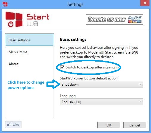 StartW8 is another free application that brings the Start Menu in Windows 8. One thing that I like about this application is that once you boot into Windows 8 the application automatically will bring up the Desktop Mode in Windows instead of the Start Screen.