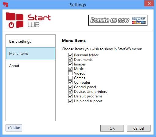 StartW8 adds the classic Start Menu of Windows 7 to Windows 8.